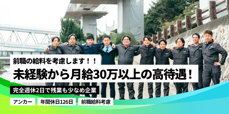 【アンカー工事の現場作業員】前職給与考慮!!・月給30万円以上/土日祝休み・残業月平均20時間